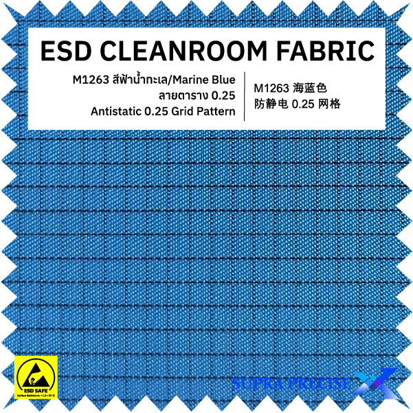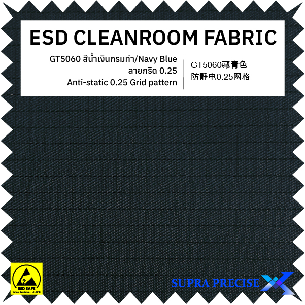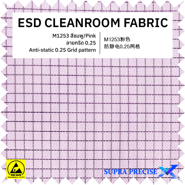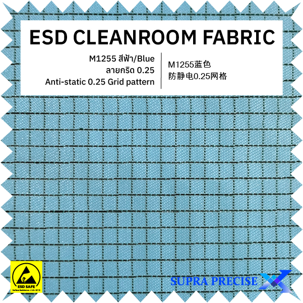 ESD Fabric 0.25 Grid Pattern ผ้าคลีนรูมป้องกันไฟฟ้าสถิต ลายกริดละเอียด 0.25 ซม.
