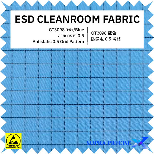 ESD Fabric 0.5 Grid Pattern ผ้า ESD ลายกริด 0.5 ซม. สำหรับคลีนรูมและไลน์ผลิต