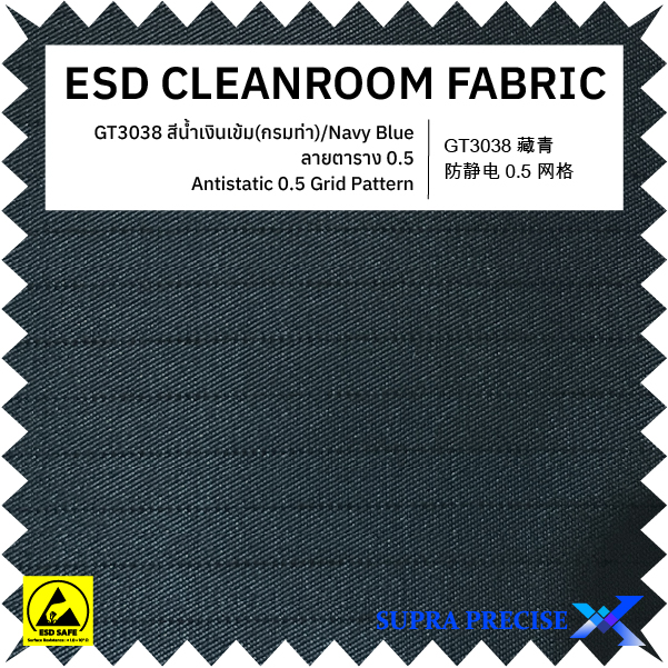 ESD Fabric 0.5 Diagonal Grey Conductive Yarn ผ้า ESD ลายเฉียง 0.5 ซม. สำหรับคลีนรูมและไลน์ผลิต