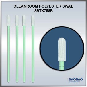 BBP761 Cleanroom Polyester Swab เป็นหัวสำลีทำความสะอาดที่ออกแบบมาเพื่อ ทำความสะอาดอุปกรณ์ที่มีความละเอียดอ่อน เช่น เครื่องพิมพ์ หัวพิมพ์ อุปกรณ์ออปติคอล และชิ้นส่วนอุตสาหกรรมขนาดเล็ก ผลิตจาก โพลีเอสเตอร์ถักสองชั้น (Double-layer knitted polyester) ที่ปลอดจากสารปนเปื้อน เช่น ซิลิโคน แอมไมด์ และ DOP