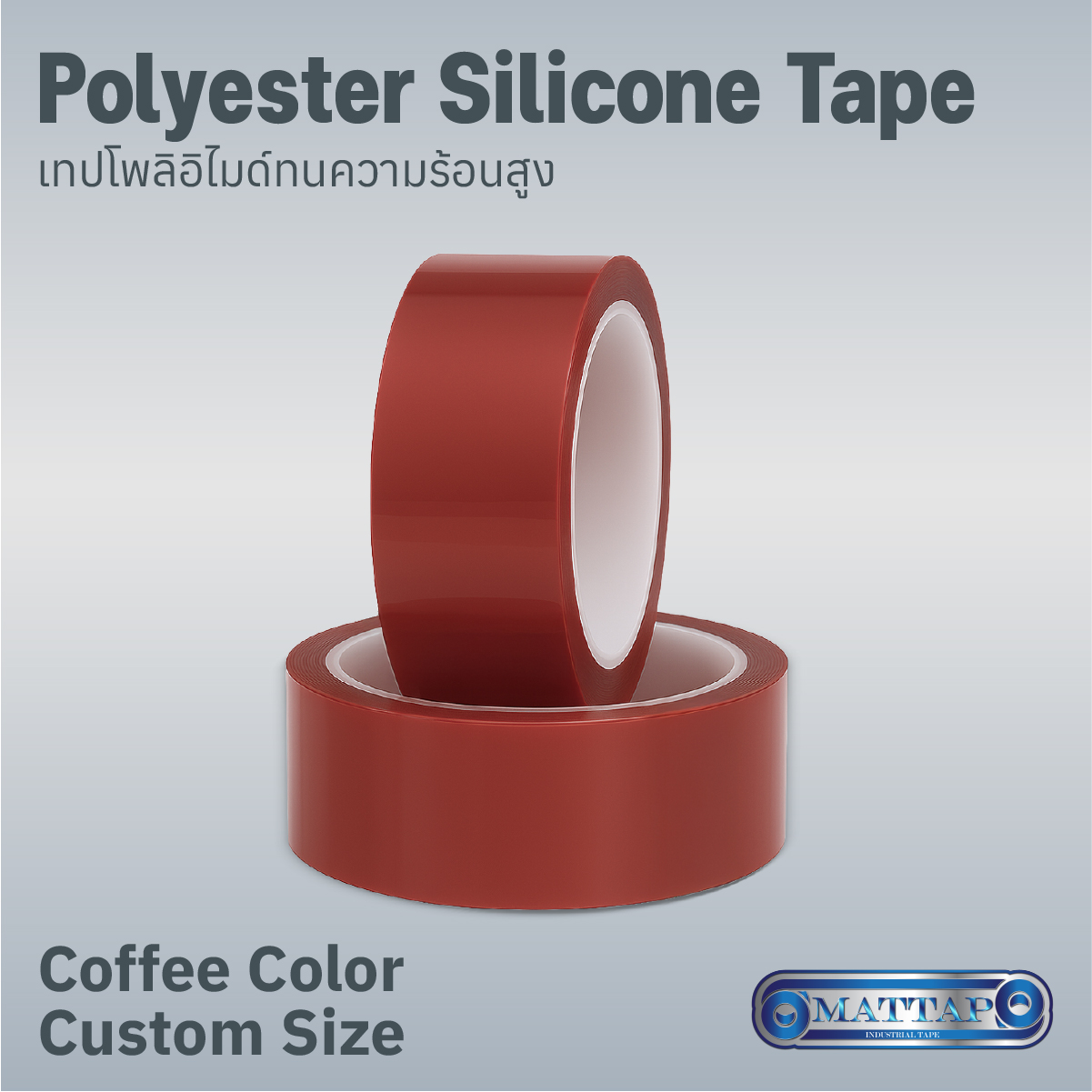 Coffee Polyester Silicone Tape ผลิตจาก Polyester (PET Film) สี “น้ำตาลกาแฟ” หรือ Coffee Tone ที่ให้ความรู้สึกพรีเมียมและมองเห็นได้ง่ายในสายการผลิต พร้อมเคลือบด้วยกาวซิลิโคนเกรดอุตสาหกรรมที่ทนความร้อนได้ถึง 180–230°C เหมาะสำหรับงานพ่นสี อบสี Masking ชิ้นส่วนโลหะ งาน PCB และงานประกอบที่ต้องการเทปสีเข้มที่ตัดกับพื้นผิวเพื่อการใช้งานที่แม่นยำ