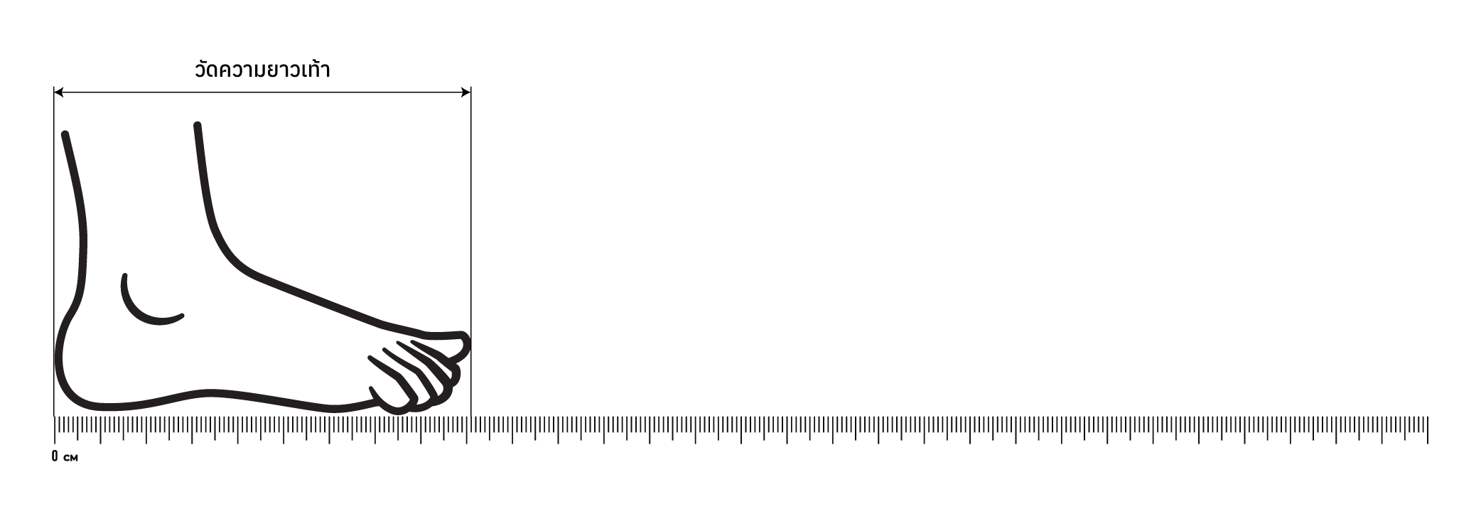 - หากมีความแตกต่างของขนาดเท้าซ้ายและเท้าขวาเล็กน้อย ให้ใช้ข้อมูลของเท้าที่ใหญ่กว่าเป็นหลัก