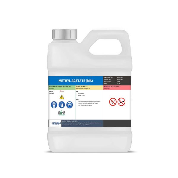 Methyl Acetate มีสูตรเคมีคือ C₃H₆O₂ และหมายเลข CAS คือ 79-20-9 เป็นของเหลวใส ไม่มีสี และมีกลิ่นหอมคล้ายผลไม้ สารนี้สามารถละลายได้ดีในตัวทำละลายอินทรีย์หลายชนิด และมีอัตราการระเหยสูง ซึ่งทำให้เหมาะสำหรับการใช้งานในอุตสาหกรรมที่ต้องการให้สารระเหยได้เร็ว