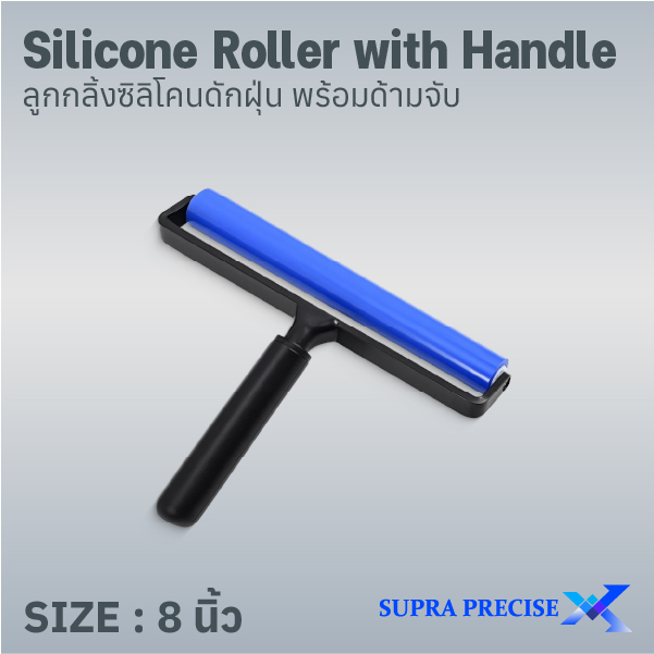 Silicone Roller with Handle ขนาด 8 นิ้ว เป็นลูกกลิ้งซิลิโคนรุ่นที่ให้พื้นที่ทำความสะอาดมากขึ้น เหมาะสำหรับการกำจัดฝุ่นบนพื้นผิวที่มีความกว้าง เช่น Film Roll, Glass Panel, LCD/OLED Panel หรือชิ้นงานอุตสาหกรรมที่ต้องการความสะอาดระดับสูง ด้วยวัสดุซิลิโคน High Tack คุณภาพพรีเมียม ทำให้สามารถดักจับฝุ่นได้ดีมากระดับไมครอน และสามารถล้างทำความสะอาดเพื่อนำกลับมาใช้ซ้ำได้หลายครั้ง จึงคุ้มค่ากว่าการใช้ Sticky Roller แบบใช้แล้วทิ้ง